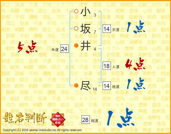 小坂井尽さんの総運は28画の1点!