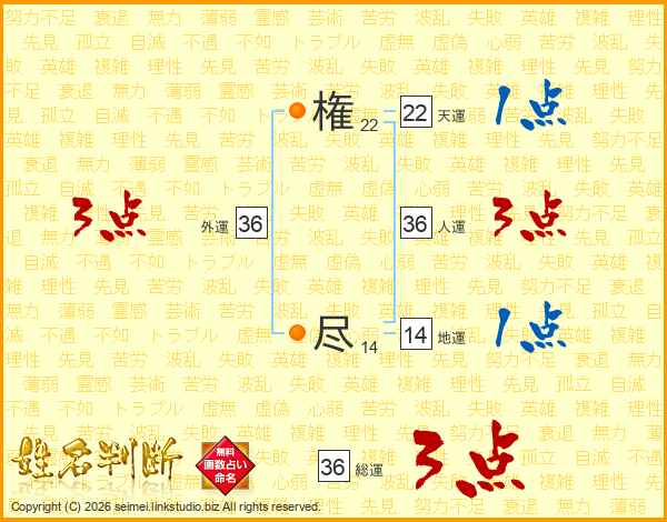 権尽さんの総運は36画の3点!