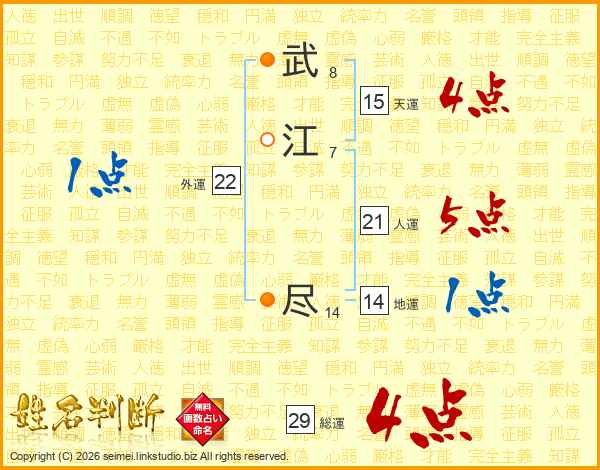 武江尽さんの総運は29画の4点!