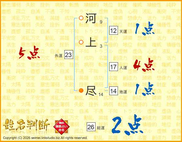河上尽さんの地運は14画の1点!