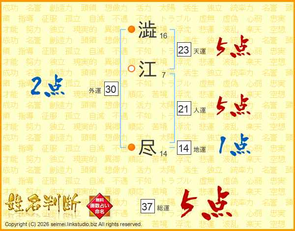 澁江尽さんの総運は37画の5点!