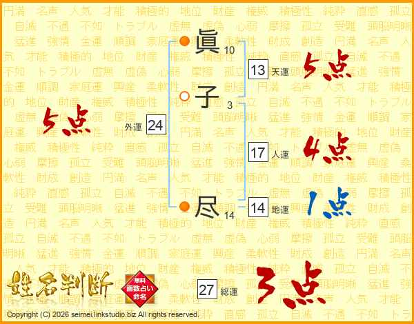 眞(10画)子(3画) 尽(14画)