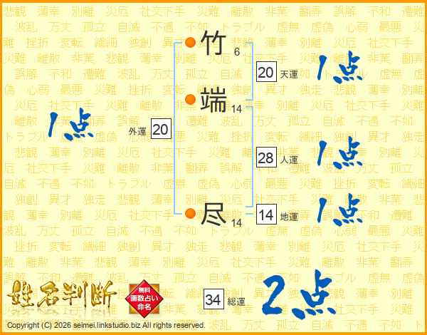 竹端尽さんの総運は34画の2点!