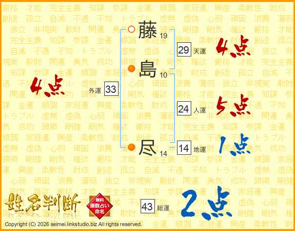藤(19画)島(10画) 尽(14画)