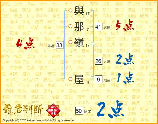 與那嶺屋さんの天運は41画の5点!