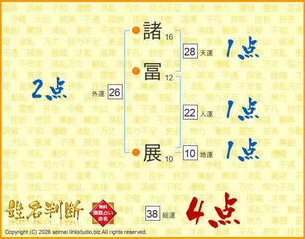 諸冨展さんの人運は22画の1点!