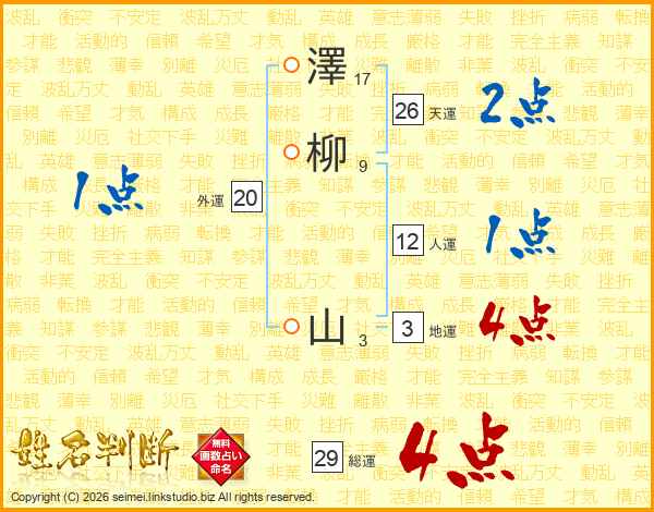 澤柳山さんの総運は29画の4点!