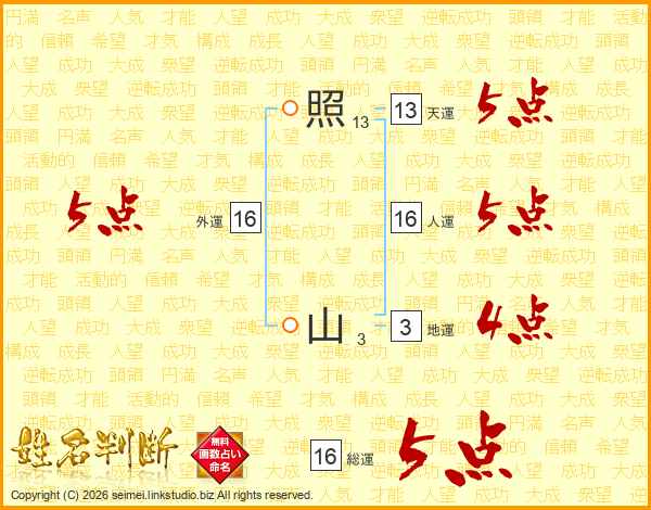 照山さんの総運は16画の5点!
