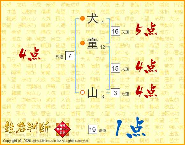 犬童山さんの総運は19画の1点!
