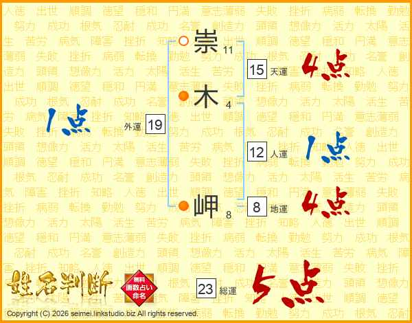 崇木岬さんの総運は23画の5点!