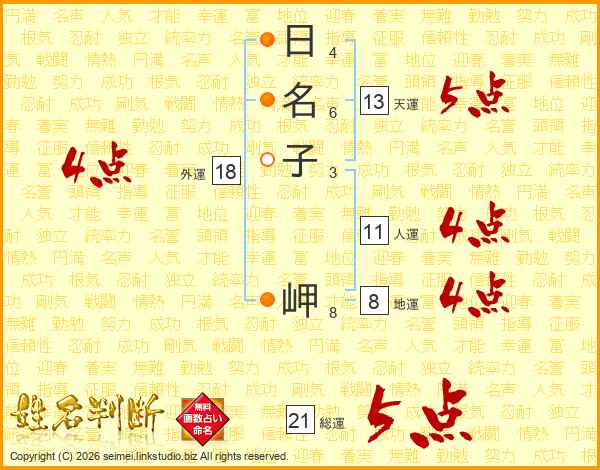 日(4画)名(6画)子(3画) 岬(8画)