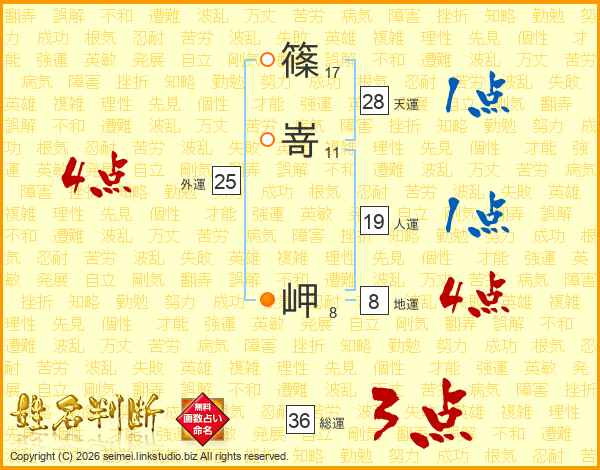 篠(17画)嵜(11画) 岬(8画)