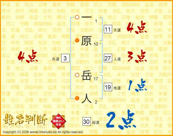 一原岳人さんの総運は30画の2点!