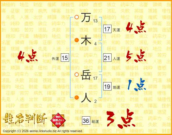万木岳人さんの天運は17画の4点!