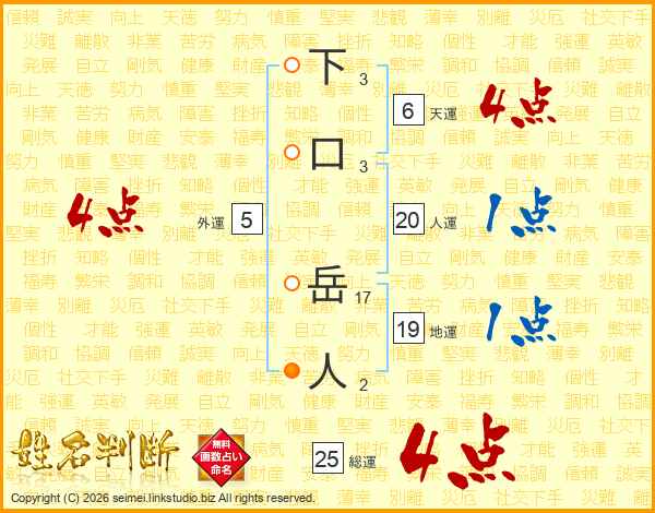 下口岳人さんの総運は25画の4点!