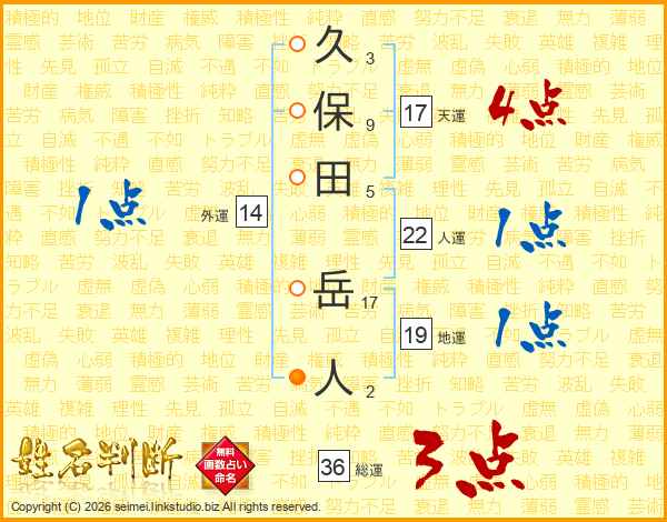 久保田岳人さんの天運は17画の4点!