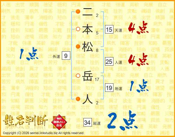二本松岳人さんの総運は34画の2点!