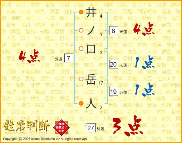 井ノ口岳人さんの人運は20画の1点!