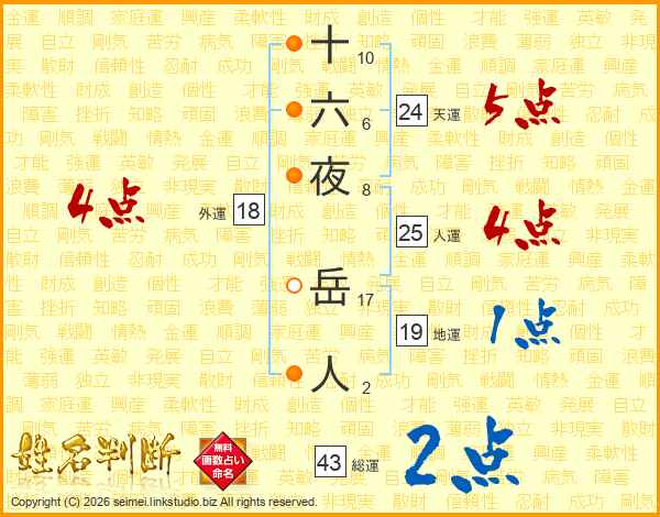 十六夜岳人さんの外運は18画の4点!