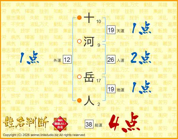 十河岳人さんの総運は38画の4点!