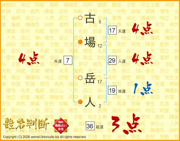 古場岳人さんの外運は7画の4点!