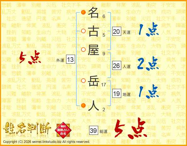 名古屋岳人さんの総運は39画の5点!