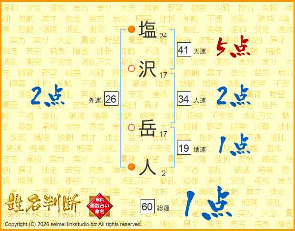 塩沢岳人さんの天運は41画の5点!