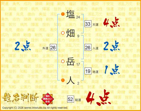 塩畑岳人さんの総運は52画の4点!