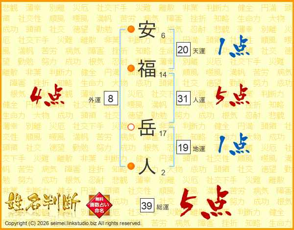 安福岳人さんの総運は39画の5点!