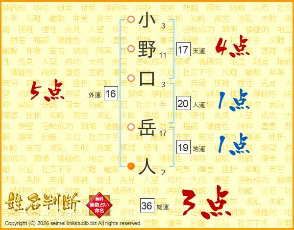 小野口岳人さんの総運は36画の3点!
