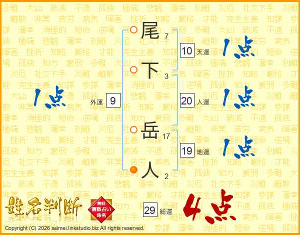 尾下岳人さんの総運は29画の4点!