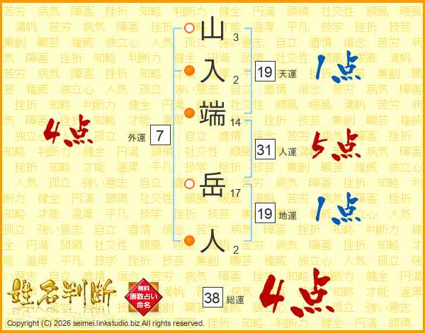 山入端岳人さんの総運は38画の4点!