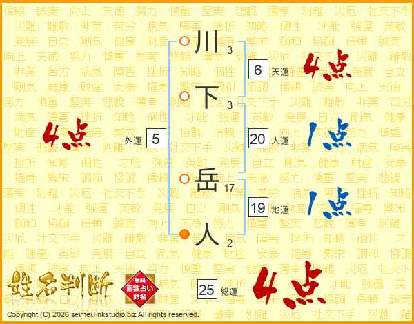 川下岳人さんの人運は20画の1点!