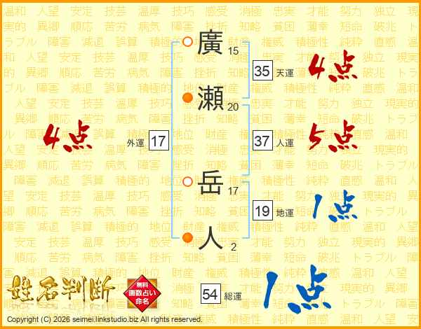 廣瀬岳人さんの外運は17画の4点!