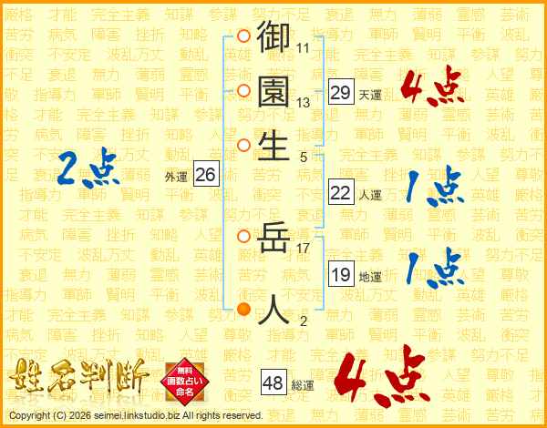 御園生岳人さんの総運は48画の4点!