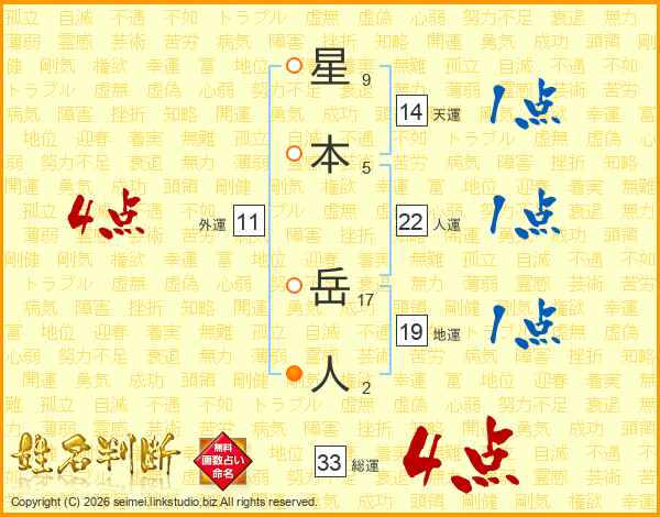 星本岳人さんの総運は33画の4点!
