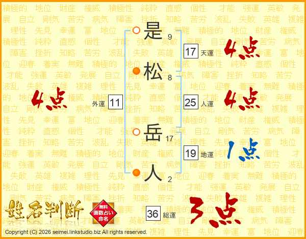 是松岳人さんの天運は17画の4点!