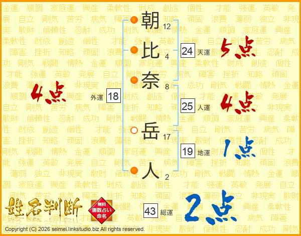 朝比奈岳人さんの人運は25画の4点!