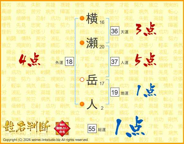 横瀬岳人さんの総運は55画の1点!