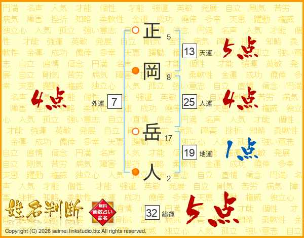 正岡岳人さんの総運は32画の5点!