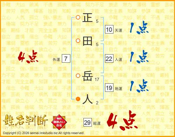 正田岳人さんの総運は29画の4点!