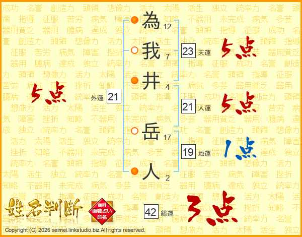 為(12画)我(7画)井(4画) 岳(17画)人(2画)