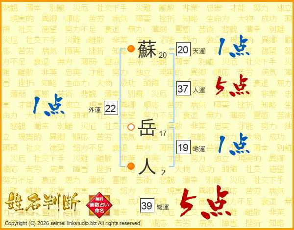 蘇岳人さんの総運は39画の5点!