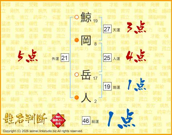 鯨岡岳人さんの総運は46画の1点!