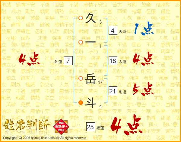 久一岳斗さんの総運は25画の4点!
