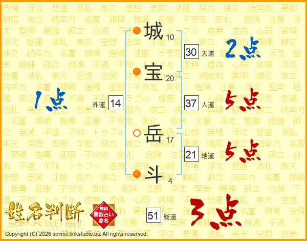 城(10画)宝(20画) 岳(17画)斗(4画)