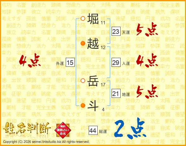 堀越岳斗さんの総運は44画の2点!