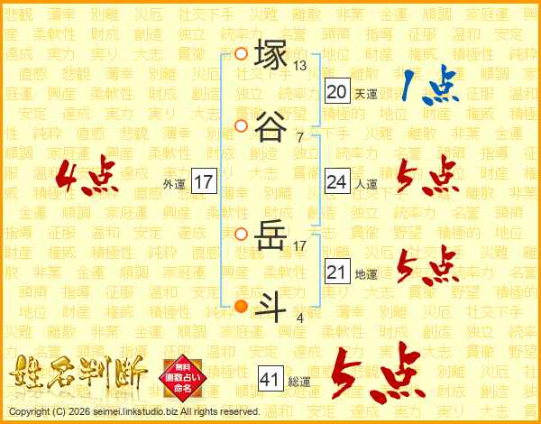 塚(13画)谷(7画) 岳(17画)斗(4画)