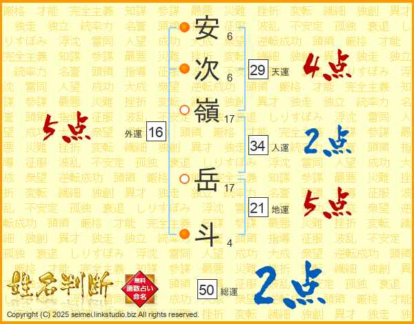 安(6画)次(6画)嶺(17画) 岳(17画)斗(4画)
