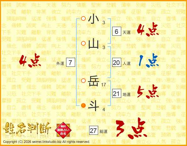 小山岳斗さんの外運は7画の4点!